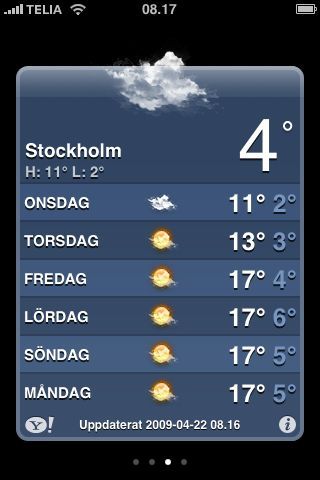 väder Värme! 22/04/2009 Sara Lämna en kommentar Kolla in fredag, lördag, söndag! Hoppas, hoppas, hoppas… Dela detta: Klicka för att dela på Facebook (Öppnas i ett nytt fönster) Facebook Klicka för att dela till Pinterest (Öppnas i ett nytt fönster) Pinterest Klicka för att e-posta en länk till en vän (Öppnas i ett nytt fönster) E-post Klicka för att dela på X (Öppnas i ett nytt fönster) X Gilla Laddar in … Relaterade