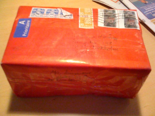 Eller inropade snarare. Den andra kom idag, från Danmark, i ett jättefint rött paket. Nästan värt 76 kr i porto att få hämta ut ett alldeles äkta inslaget paket! Hunden själv var ganska ful, mycket större än jag trodde. Jämför med den lilla nätta schäfern eller vad det är, den grå vovven ser grotesk ut bredvid :). Min lilla samling, den slutar nog där.