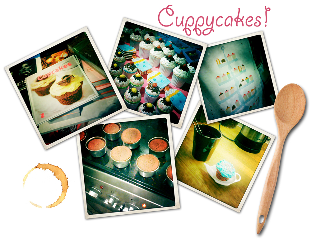 Christian hjälpte mig att göra en söt, men töntig bild i Photoshop av helgens cupcake-äventyr :). Kan liksom inte låta bli, de jäkla cuppycakes tar fram sötdjävulen i mig, precis som mopsvalpar… Efter förra helgens bakning och igångdragande av cupcake-tävling på jobbet så kretsade så klart allting kring koppkakor. Såg de överallt. Bilderna är som vanligt tagna med min crappiga iPhone-kamera, fast i roliga appen Hipstamatic, polaroid style!