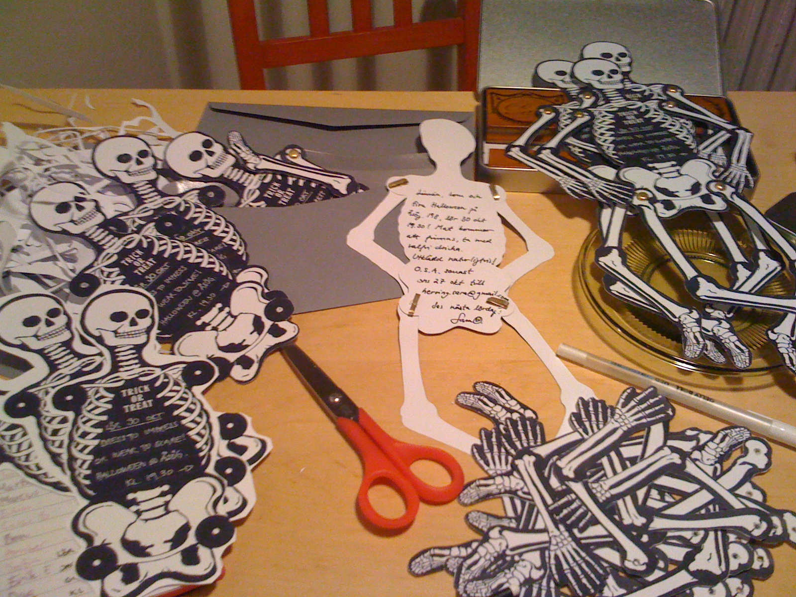 ”Dress to impress or wear to scare”. Citat lånat av husguden Martha Stewart. Gillade det så mycket att det fick bli ledorden för gårdagens Halloweenparty. Skickade ut (några) riktiga inbjudningskort den här gången, också med inspiration (och mall) från Martha.